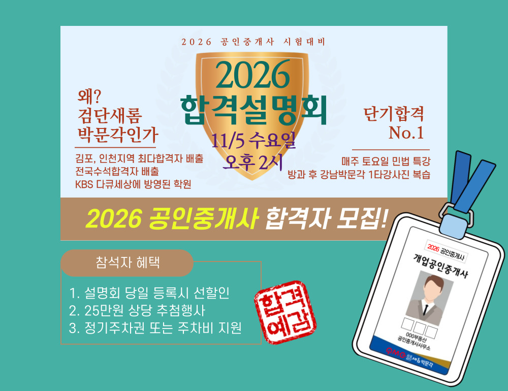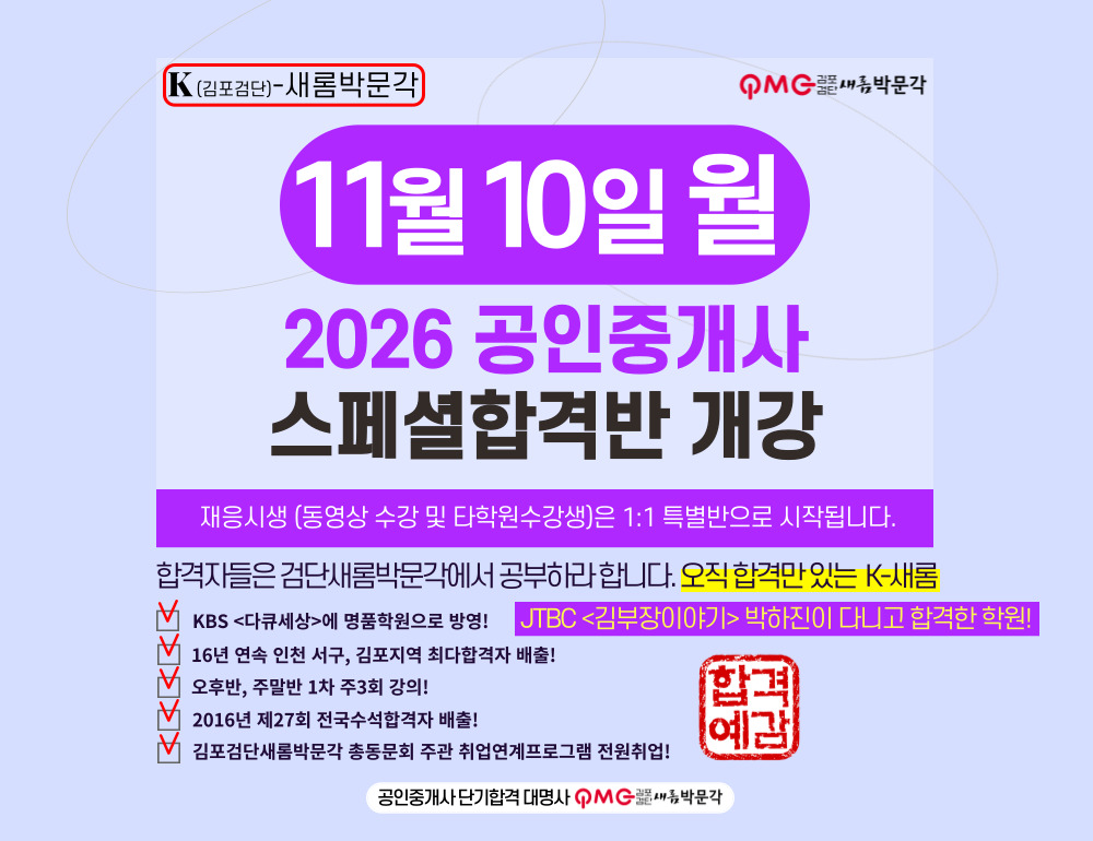 김포검단박문각TV 김포검단 새롬 공인중개사 전문학원의 유튜브 채널을 확인하세요