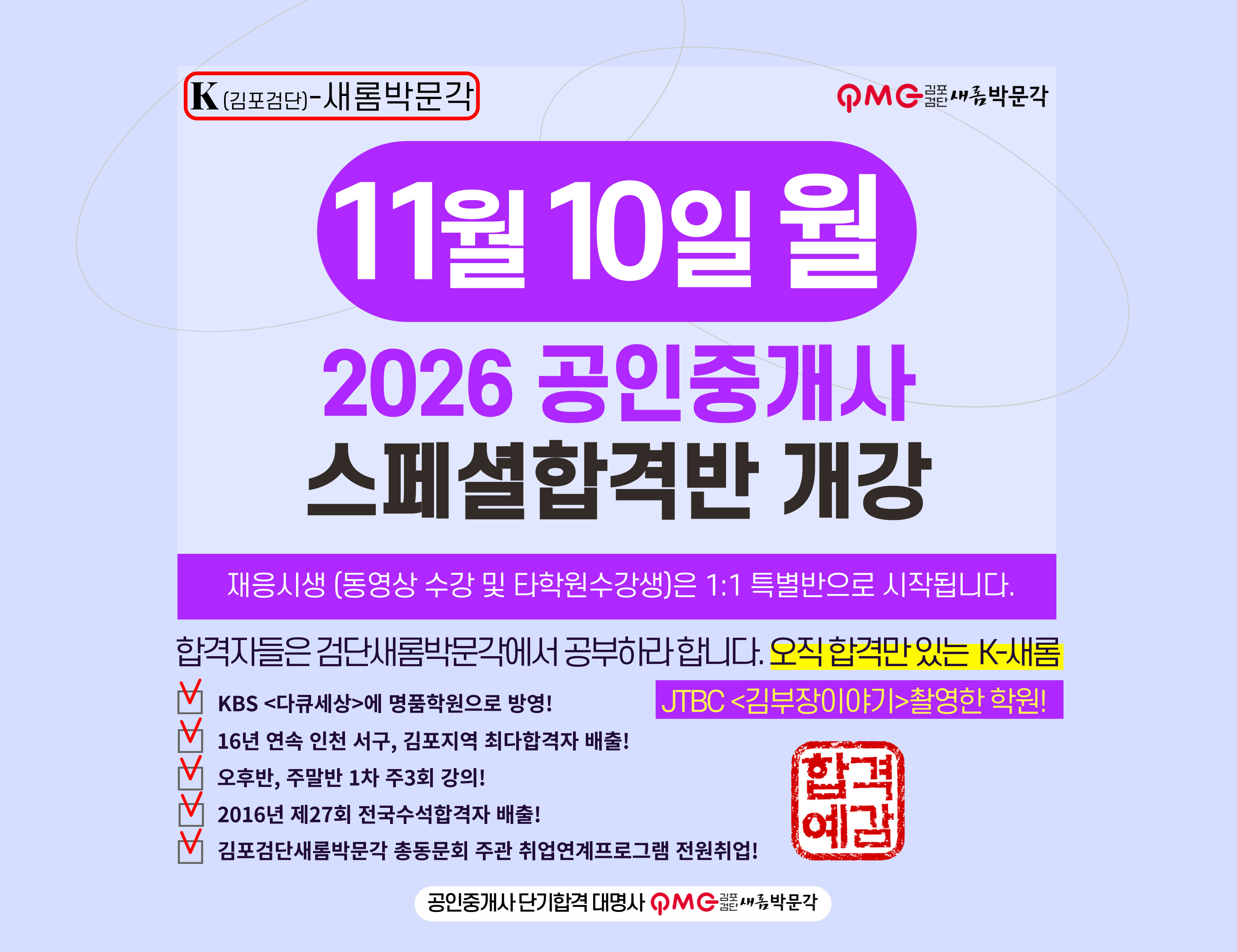 김포검단박문각TV 김포검단 새롬 공인중개사 전문학원의 유튜브 채널을 확인하세요